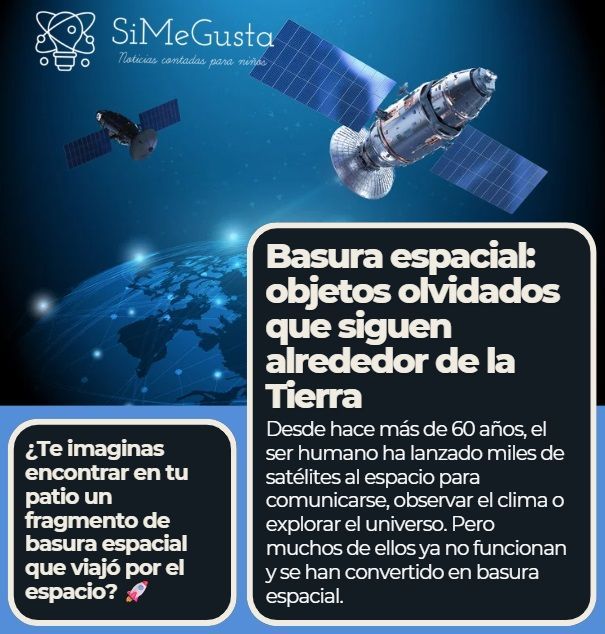Aprender sobre los satélites y la basura espacial es descubrir cómo la ciencia nos conecta con el universo. Cada satélite que gira sobre la Tierra tiene una misión importante: observar el clima, cuidar el medio ambiente o ayudarnos a comunicarnos. Pero también nos recuerda que debemos ser cuidadosos con lo que enviamos al espacio. 🚀✨