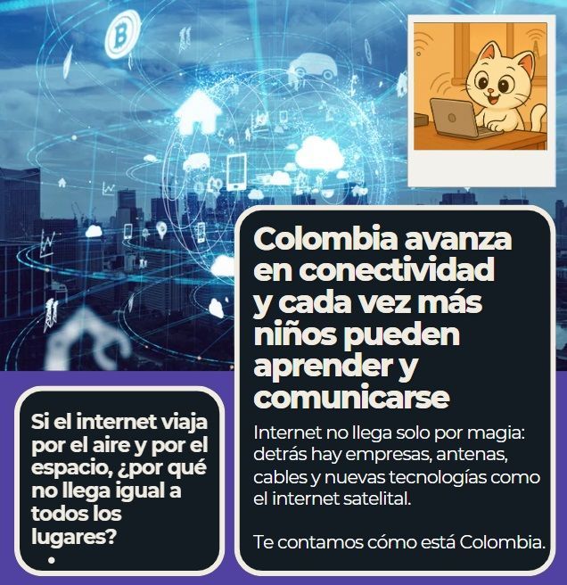 En este artículo aprendimos que el internet no llega solo por magia: detrás hay empresas, antenas, cables y nuevas tecnologías como el internet satelital. También vimos que en Colombia cada vez más personas pueden conectarse, usar el celular, estudiar y buscar información, gracias a tecnologías como el 4G y el 5G.